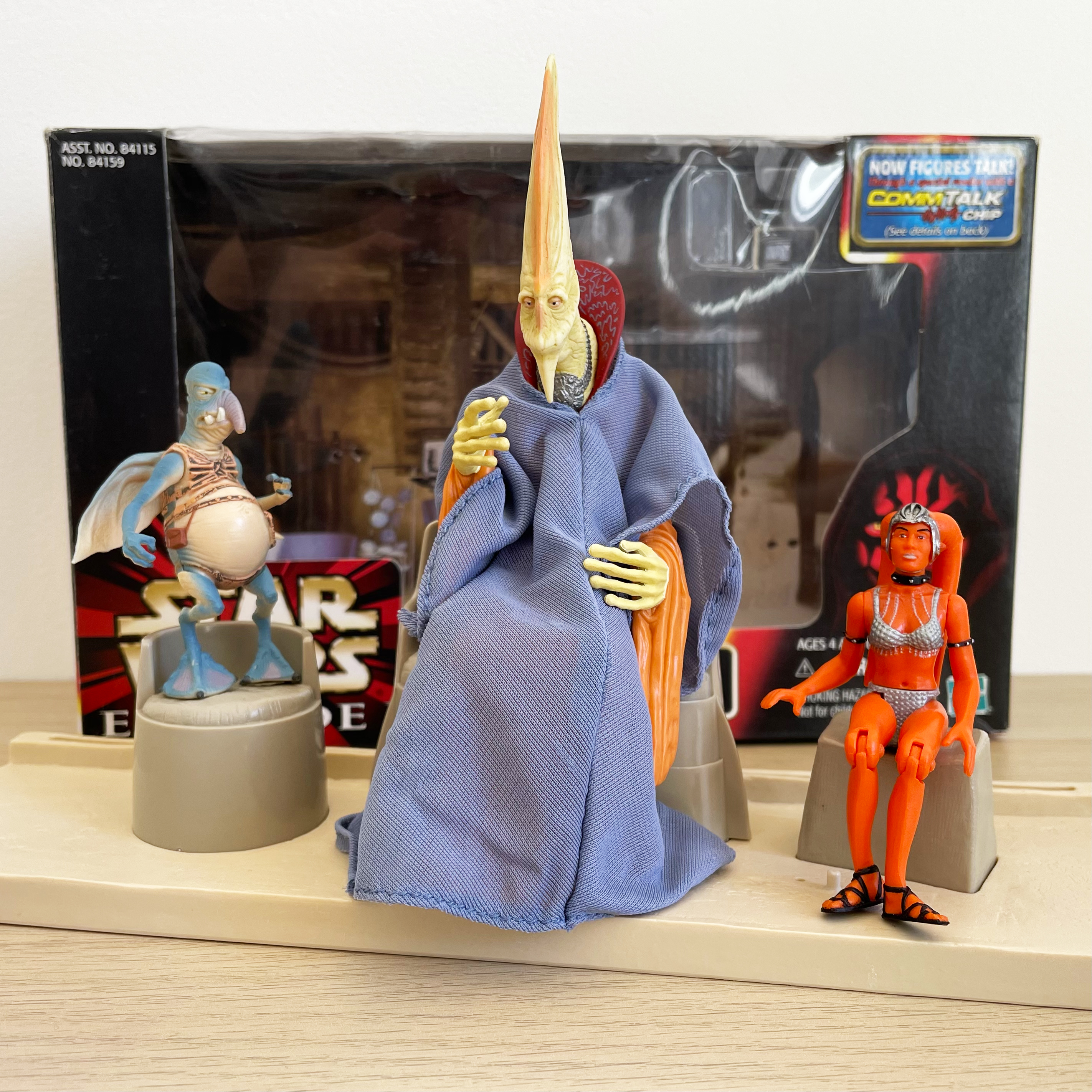 It’s a wild concept. A ‘cinema scene’ set that may as well be called a ‘frame’ as I’m not sure these three characters appear in the film for any more than a split second, and for two of the three characters, that is their only appearance in the film, let alone the saga. One of the three, Graxol Kelvyyn, is almost twice the size of the standard figures in this line.