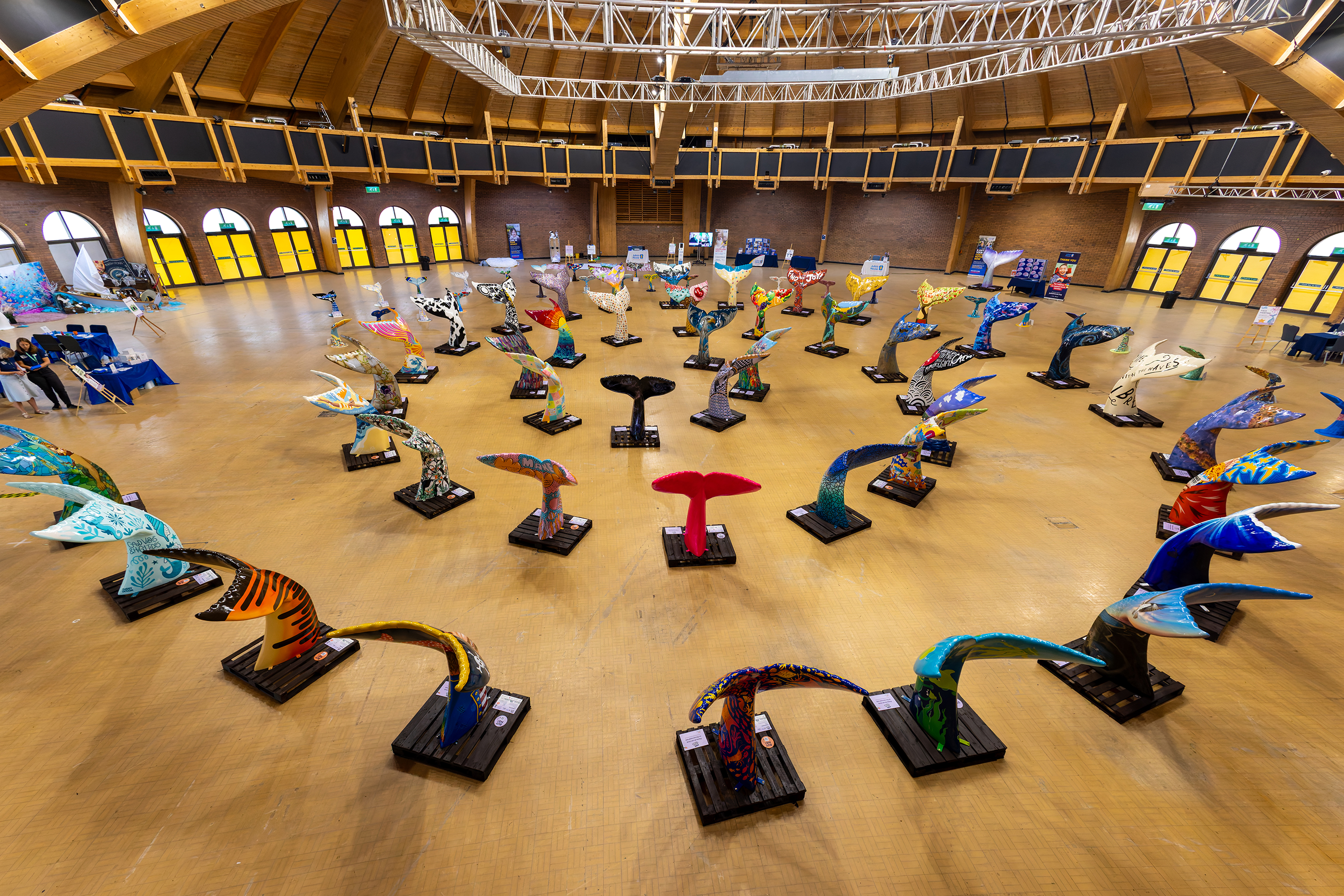 Having been placed across Bournemouth, Christchurch and Poole throughout the spring, the full collection of tall and tiny tails were brought back together in one room at the BIC for two days. I was fortunate to get a preview of them in storage back in March, but to see them positioned in the round of the Purbeck Hall was quite a sight.